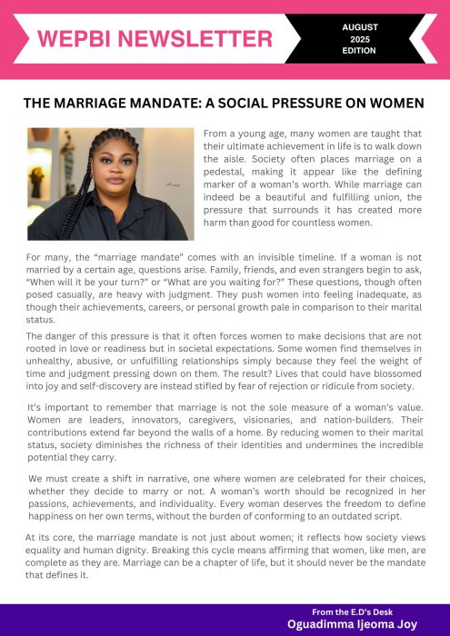 Step Up the Pace: A Call to End FGM – Oguadimma Ijeoma Joy, Executive Director, WEPBI